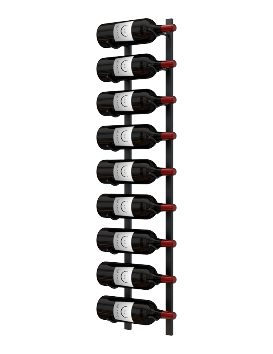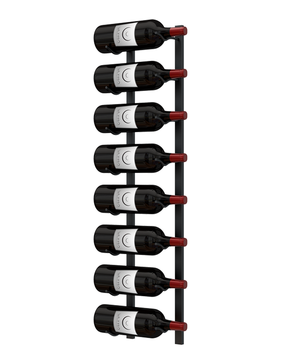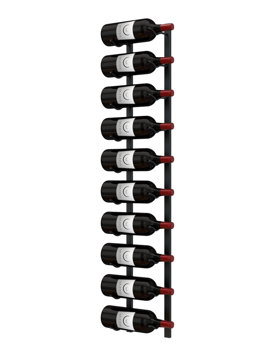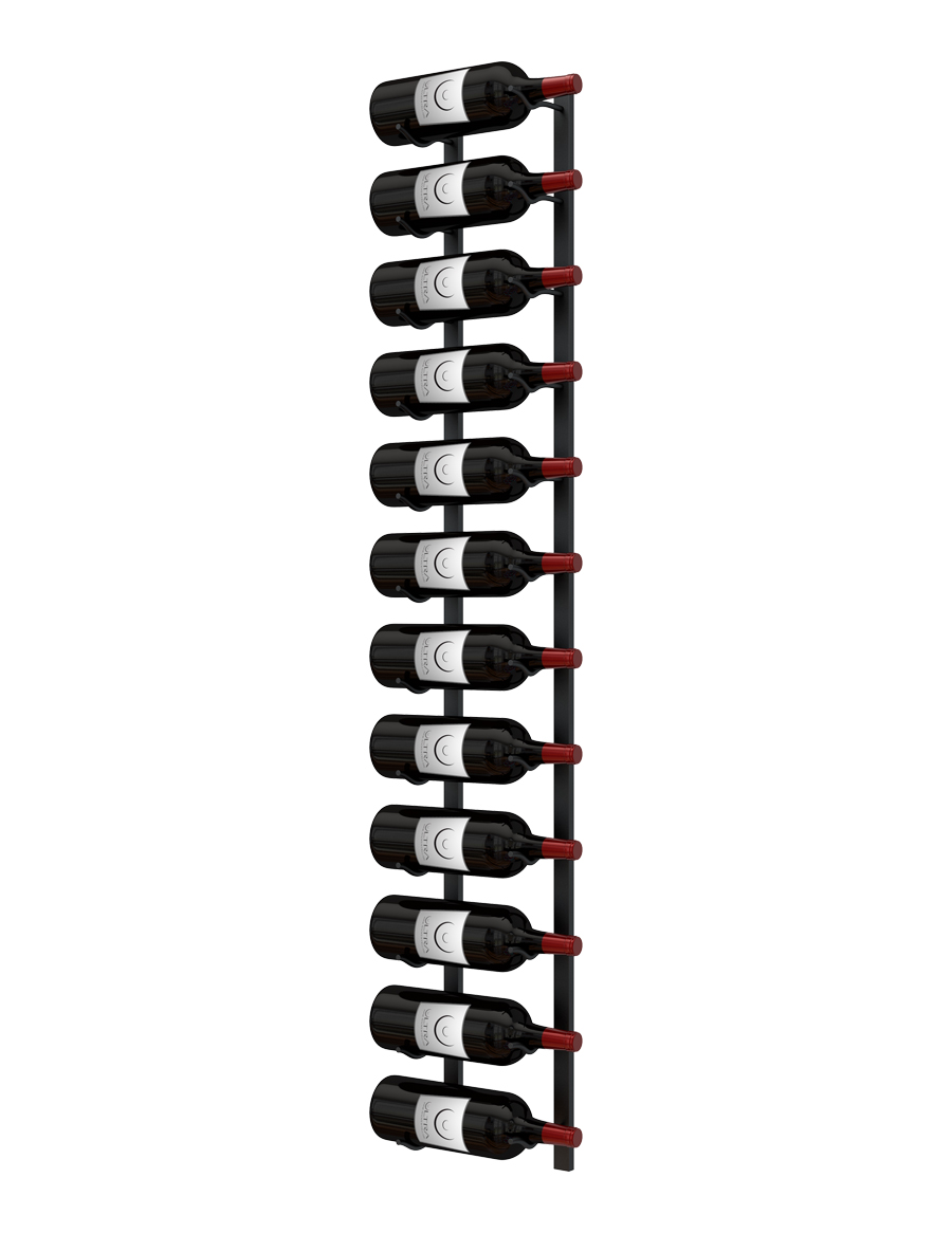 E-Series Magnum wall rails are available in four rail heights (3.31 ft, 3.85 ft, 4.15 ft, and 5 ft). Rails can be stacked vertically to create larger wine walls while increasing storage capacity. Our magnum wall rails can hold 8-12 bottles on each metal wall wine rack.