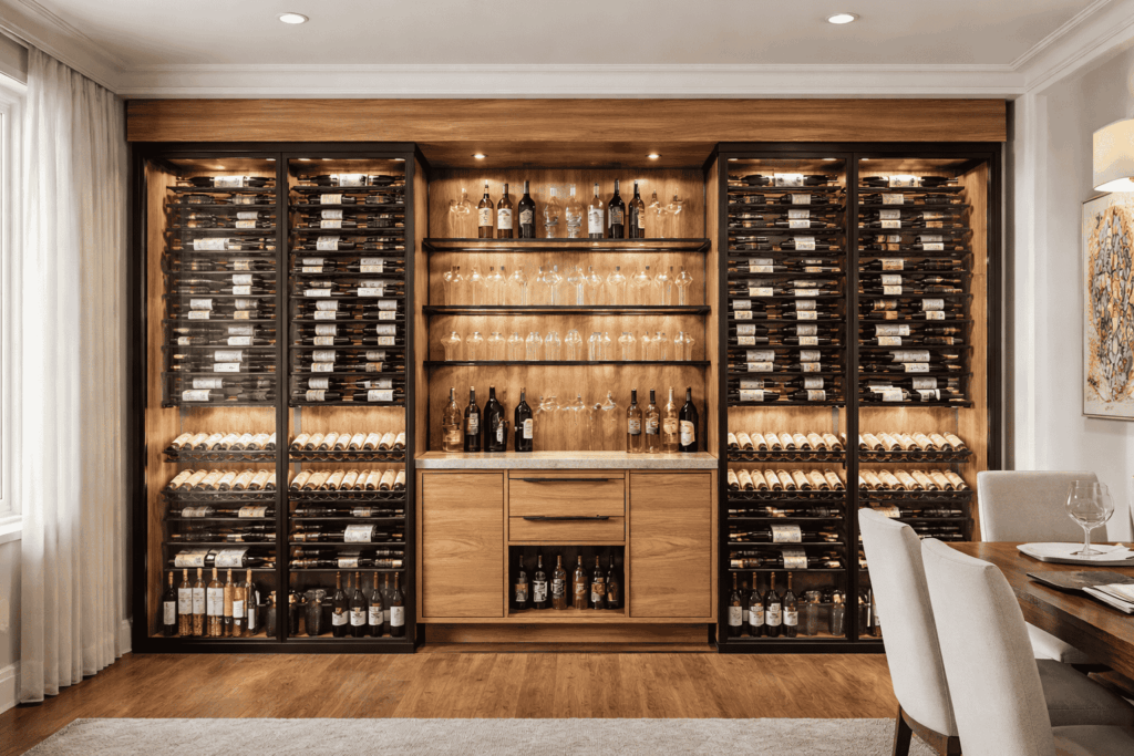 This is where things get more tailored. A mid-range wine cellar often includes custom wine racking, a dedicated cooling system, insulation, and vapor barriers. You may also incorporate aesthetic elements like glass doors, accent lighting, and higher-quality wood finishes. These cellars balance functionality with style and are common in modern homes.